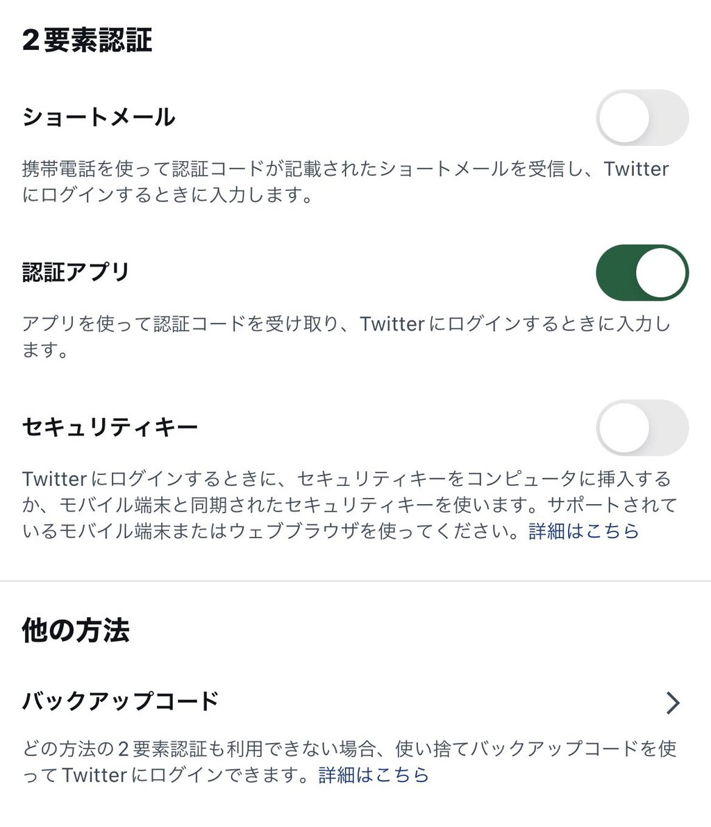 なんかツイッターくんの言い回しがアレだけど、TwitterのSMS認証は有料化でも、2段階認証のやり方は複数あるから設定のセキュリティからショートメールをオフにして認証アプリをオンにすれば二段階認証自体は引き続き無料で使えるってことでいいんじゃないかな? pic.twitter.com/5IHBxESy4H