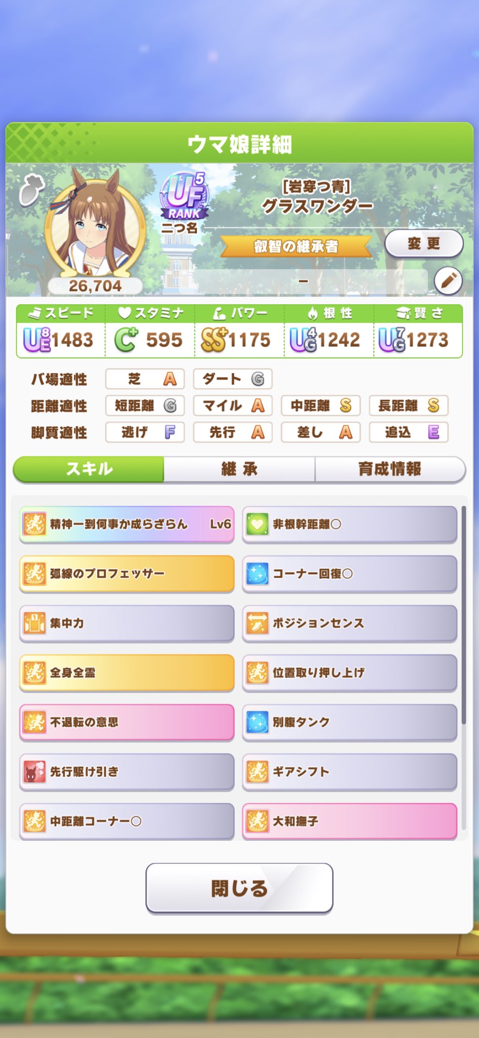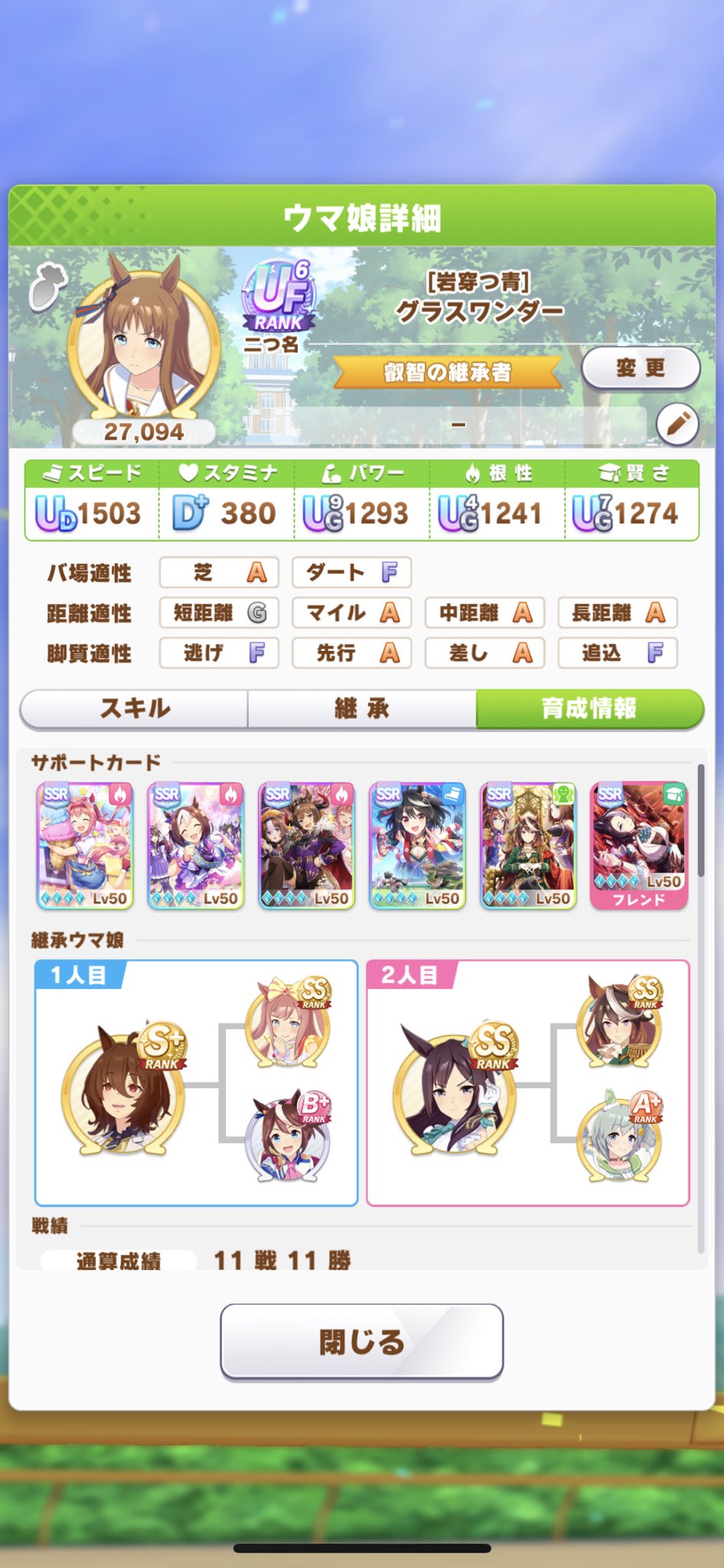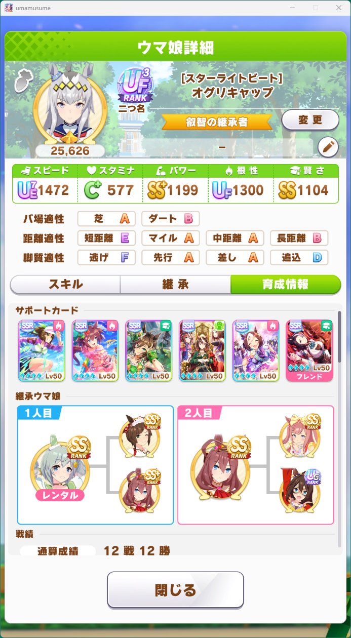 問題はスキルなんだよな根性育成。ステータスが良くてもスキルが微妙だと弱い…逃げなら有りなのかなあ