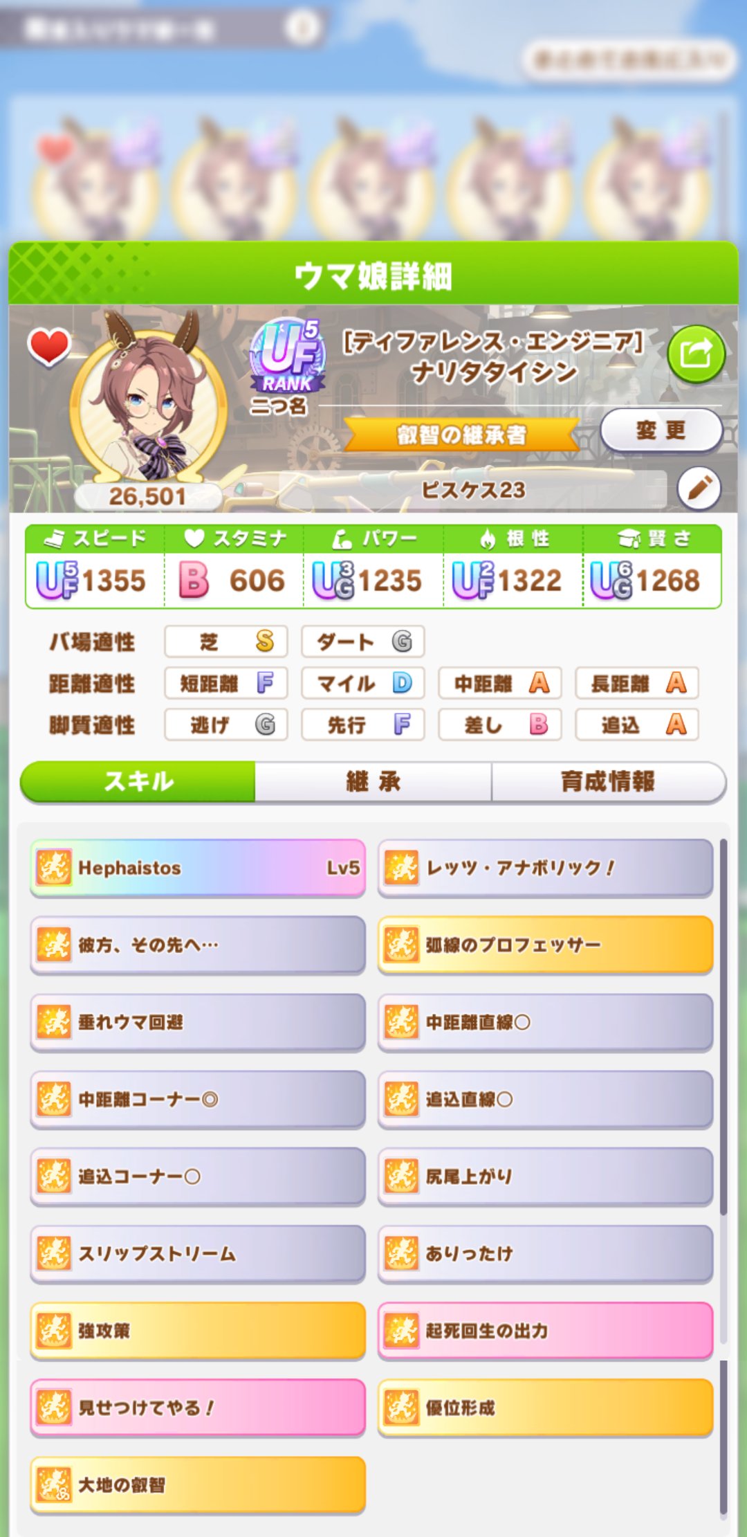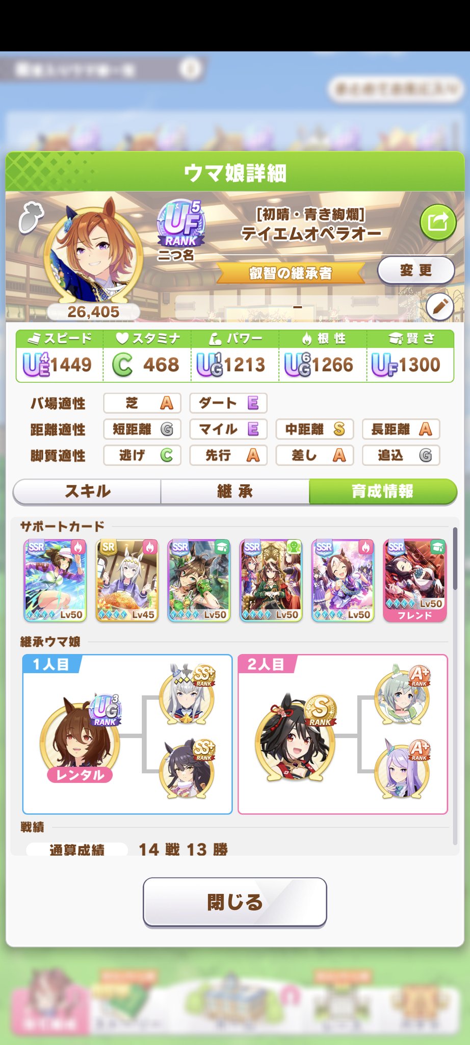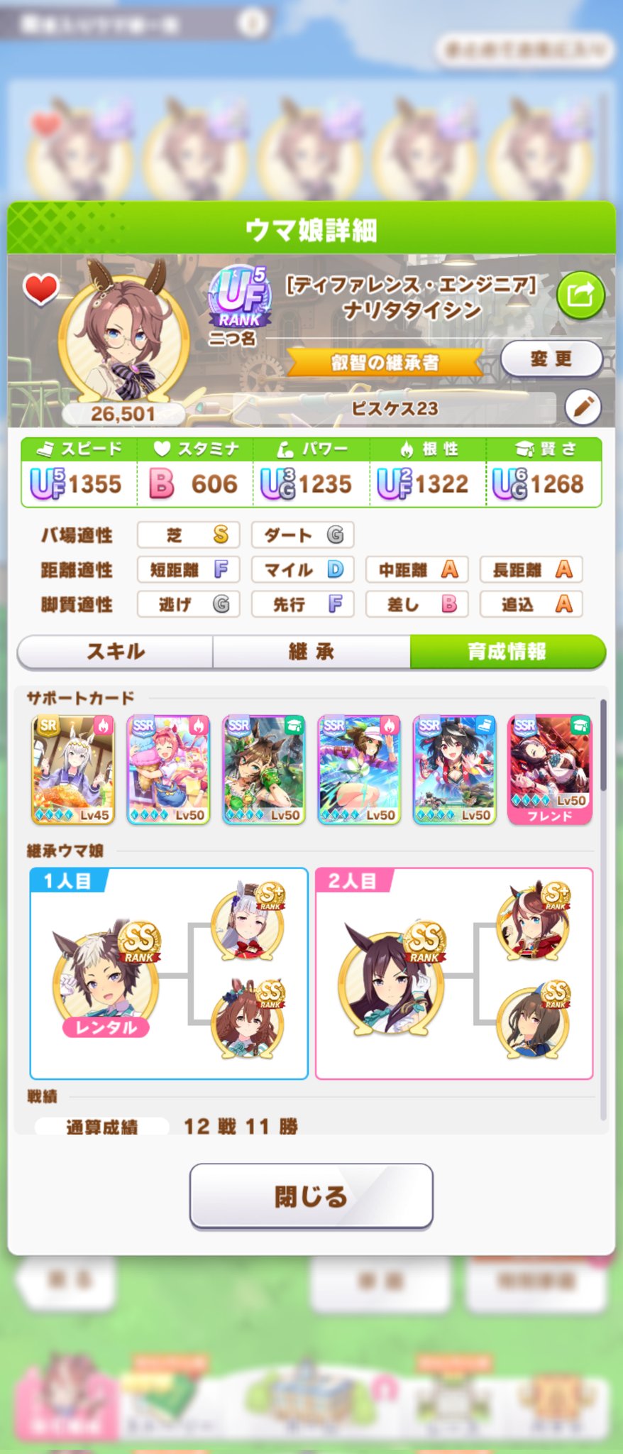 問題はスキルなんだよな根性育成。ステータスが良くてもスキルが微妙だと弱い…逃げなら有りなのかなあ