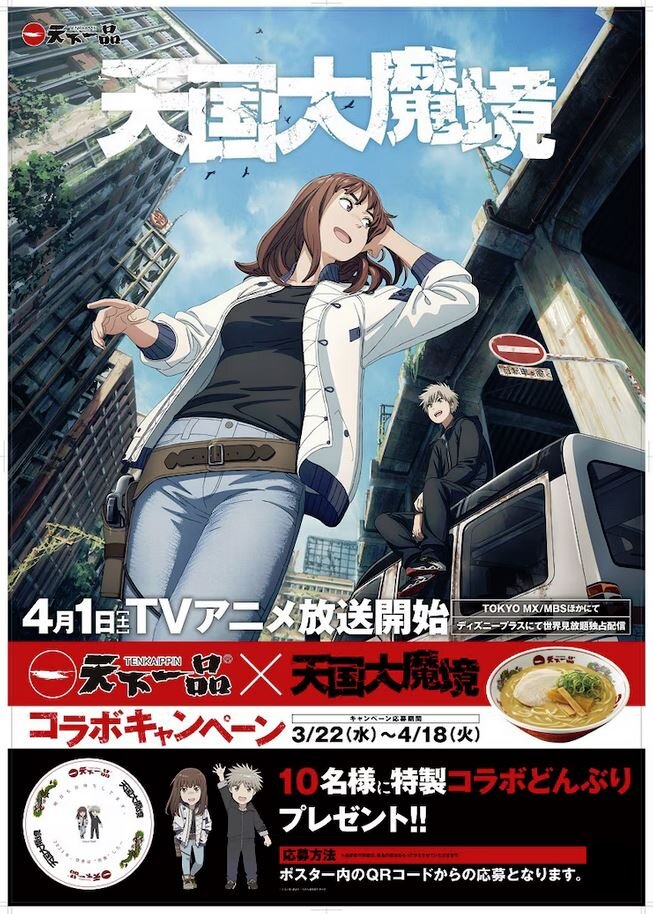 石黒正数原作によるTVアニメ「天国大魔境」と天下一品がコラボ。3月22日からコラボどんぶりが当たるキャンペーンがスタートする。
