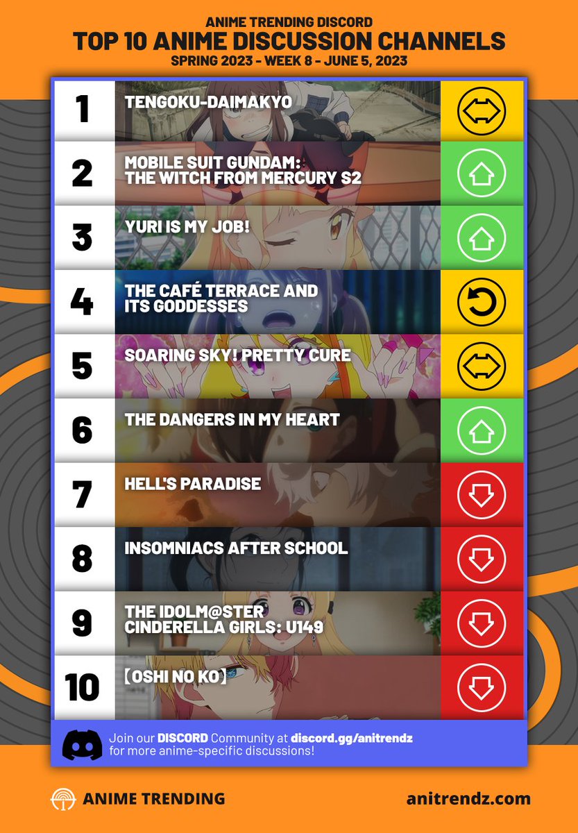 Here are the TOP 10 MOST DISCUSSED ANIME on Anime Trending’s Discord Community for Week#8 of the Spring 2023 Anime Season!