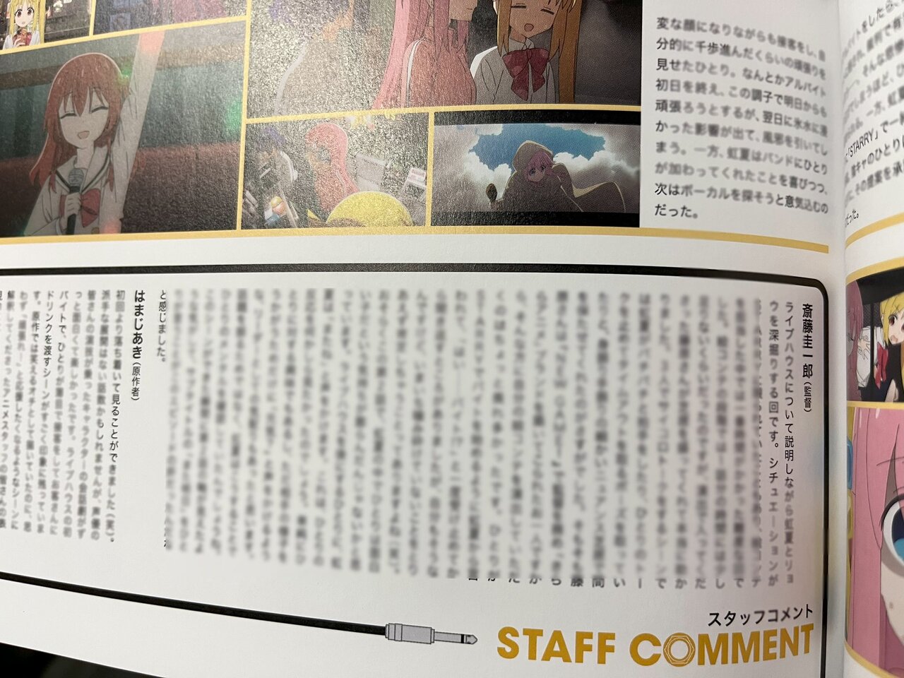「ぼっち・ざ・ろっく!」TVアニメ公式ガイドブック、右が斎藤圭一郎、左がはまじあきのコメント量です。はまじあき…