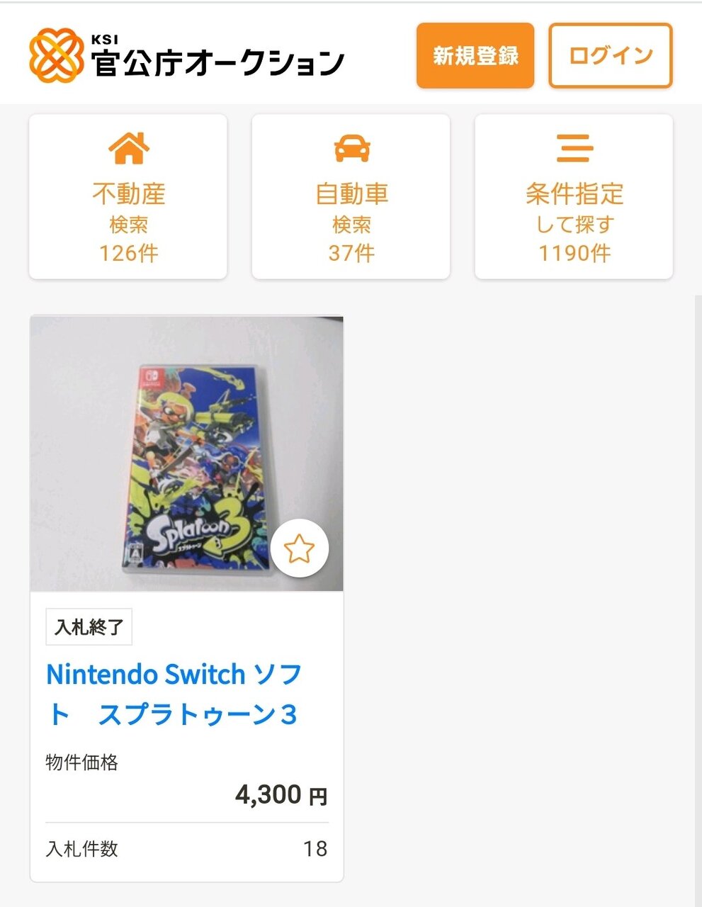 【話題】国税庁が税金滞納者から差し押さえた資産が出品される“官公庁オークション”にてスプラトゥーン3の出品が確認される