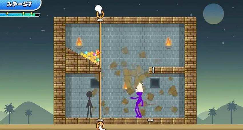 棒を引き抜いてお宝を回収、塔にいる敵を倒して強くなったり、駐車場から車を出したりと既視感ある“あのゲー”たち。キャラは棒人間で再現