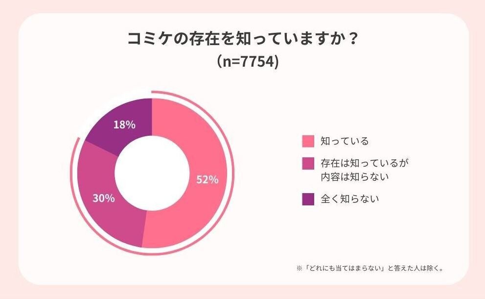 ・結果を見てみると、「知っている」と答えた人が52%、「存在は知っているが内容は知らない」と答えた人が30%となり、「10代~40代の8割以上がコミケの存在を知っている」という実態が明らかになった。全く知らない人はわずか18%となり、かなり認知度の高いイベントであることが伺える。