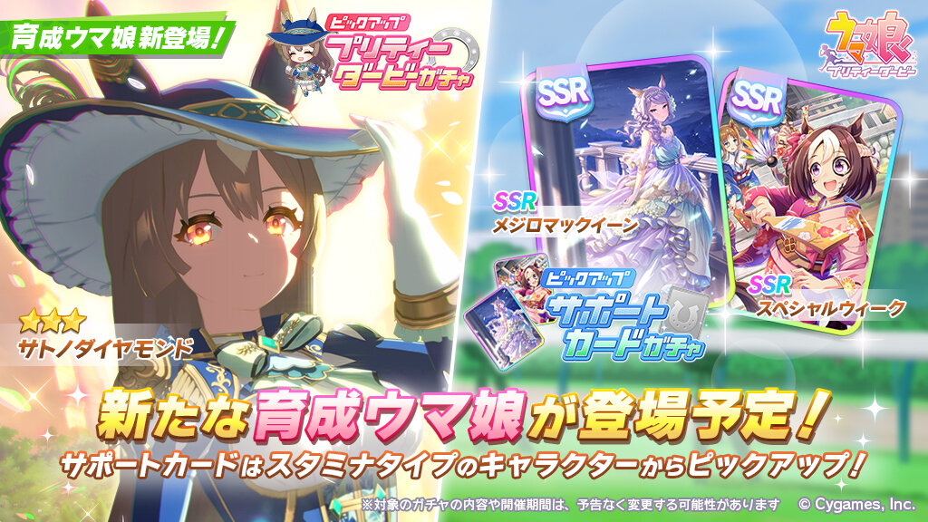 9/11(月)、プリティーダービーガチャに★3サトノダイヤモンドが登場予定!
