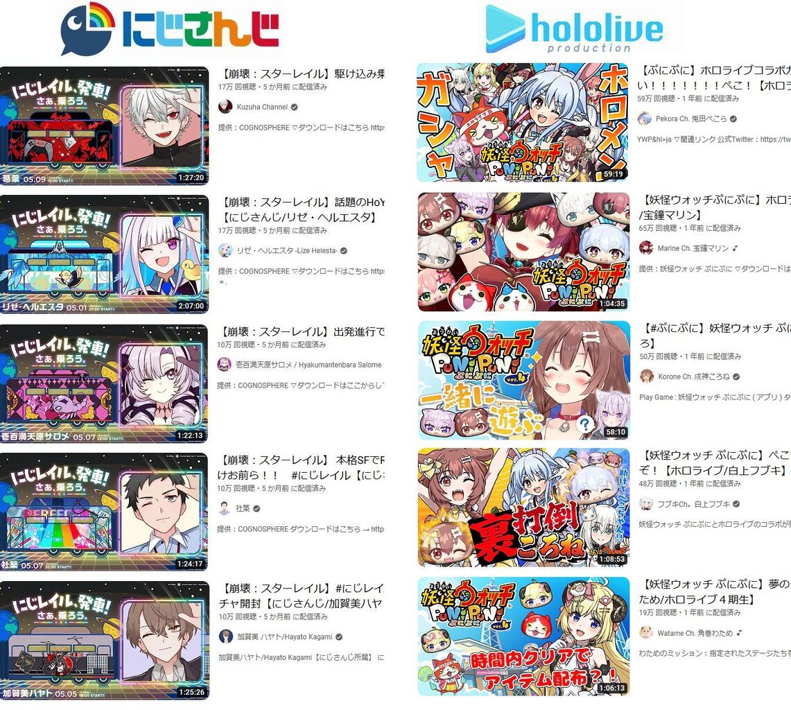 これだけ差あればにじさんじにばかり大型案件が集中するのも然もありなんって感じだな