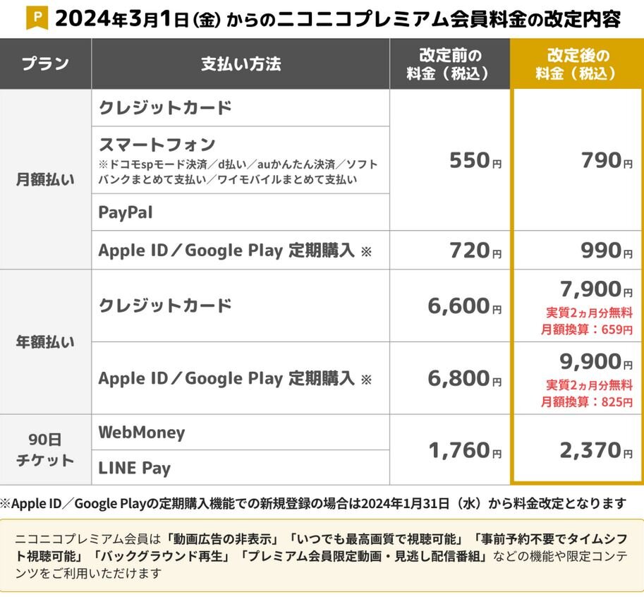 また、2024年3月よりプレミアム会員料金の改定を実施させていただきます。