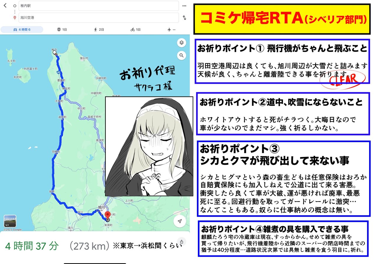 無事、旭川には降り立ったが、私のコミケはまだ終わってません。共に祈ってください。目標は除夜の鐘が鳴る前に帰宅する事です。 pic.twitter.com/Zi2La7YX7w