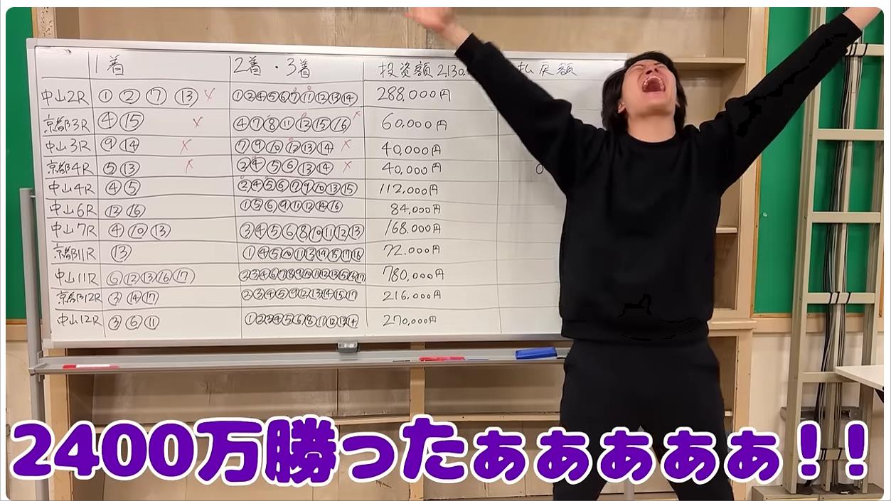 ▼粗品さん、競馬で勝った2400万円