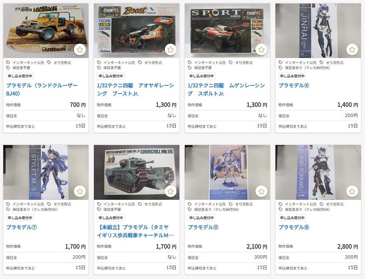 官公庁オークションにガンプラや美少女プラモデルが出品中