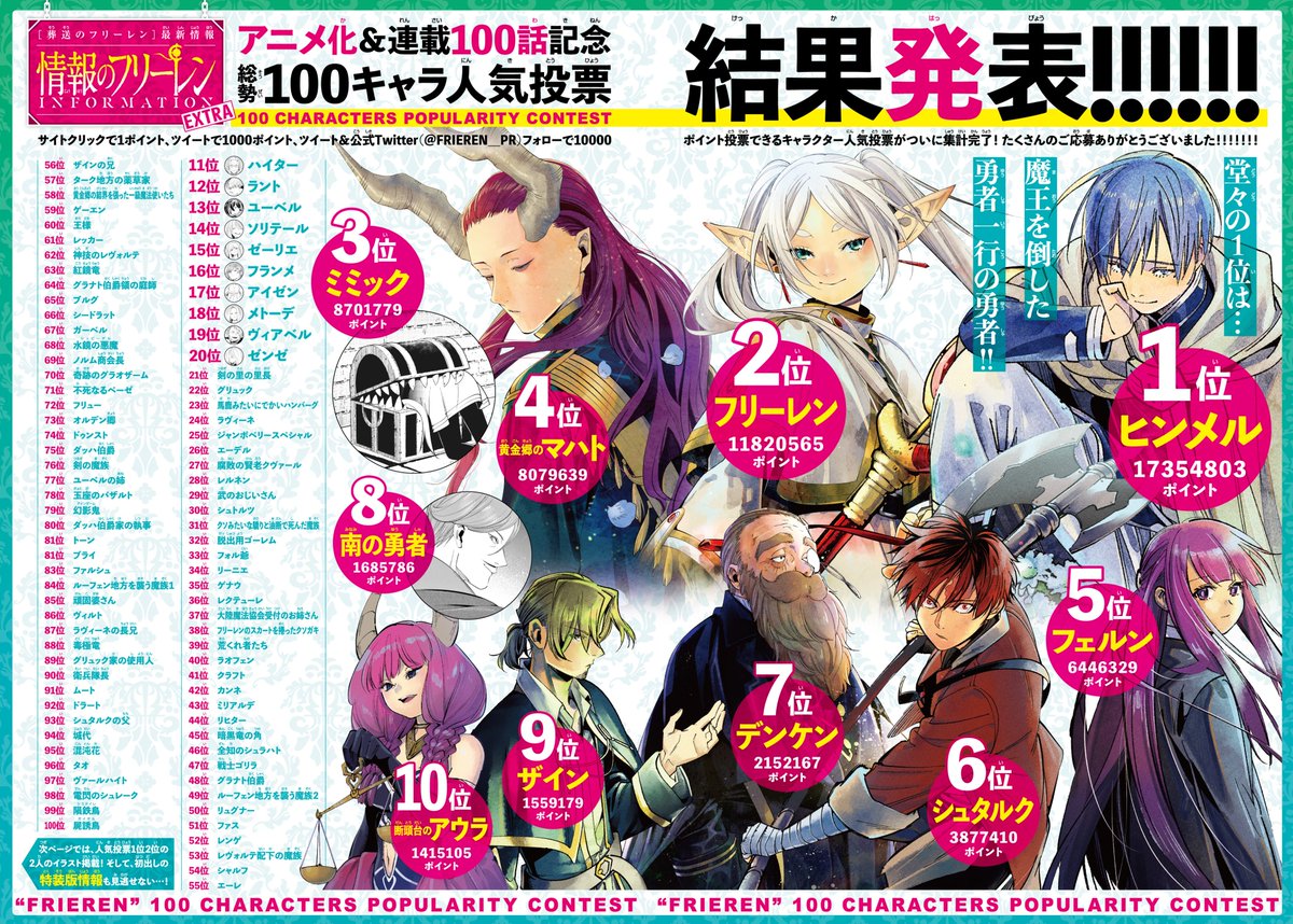 得票数 86万4863票#フリーレン第2回キャラ投票 pic.twitter.com/hAlhSdXlJC