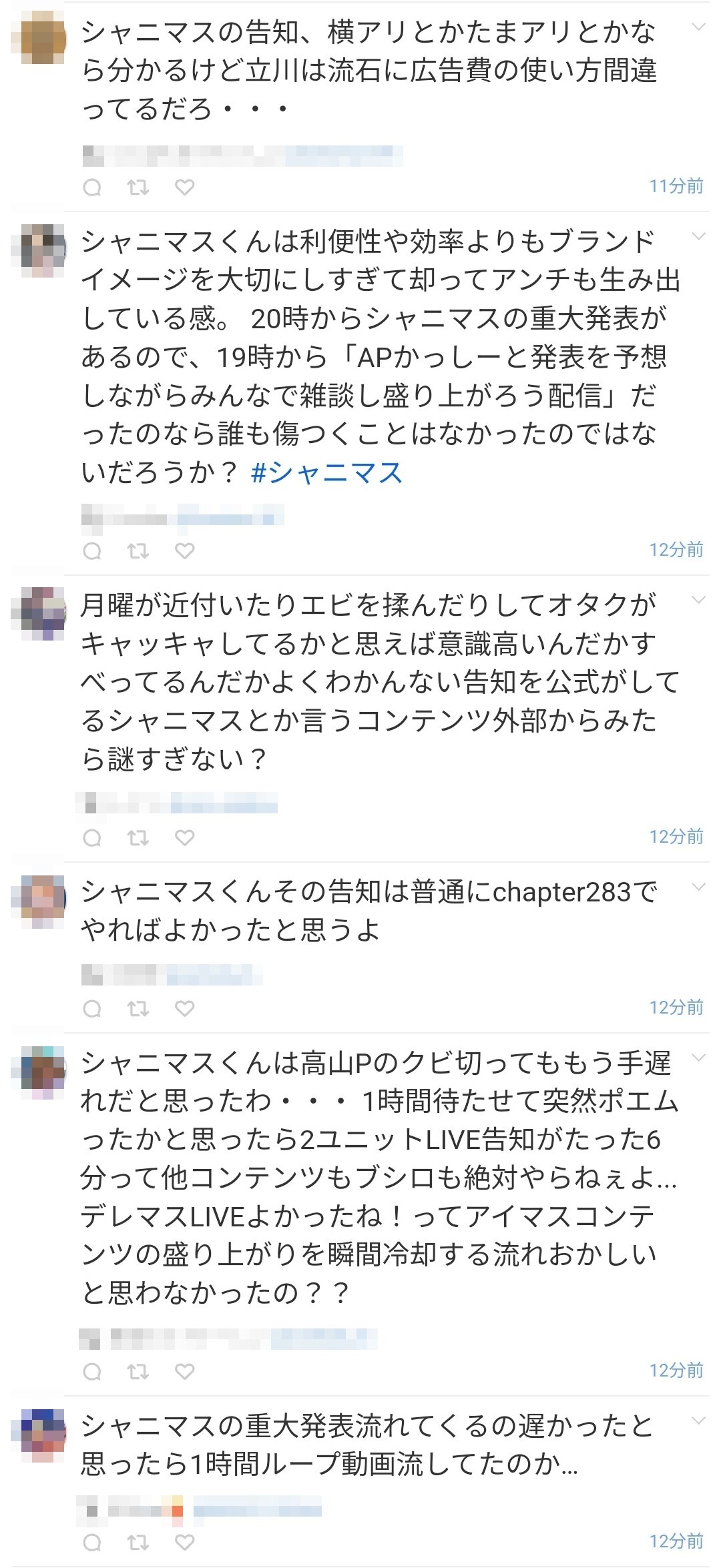 ・アプリ(2作目)とTVアニメが不評でシャニオタクはここ最近ずっとひりついてるみたい