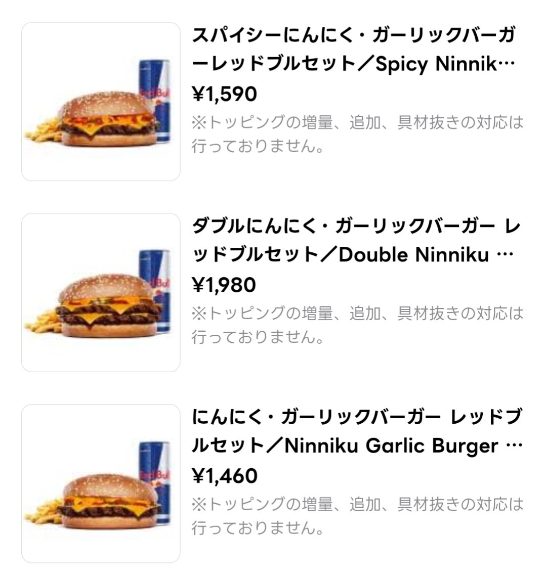 にんにくバーガーにレッドブルをセットにするとかいう
