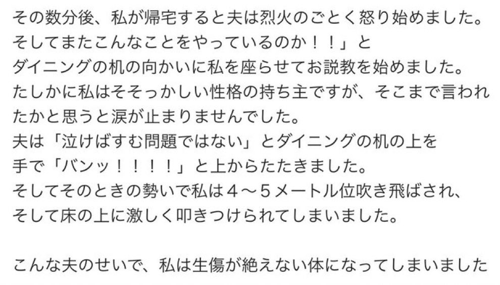 こんな夫のせいで、私は生傷が絶えない体になってしまいました