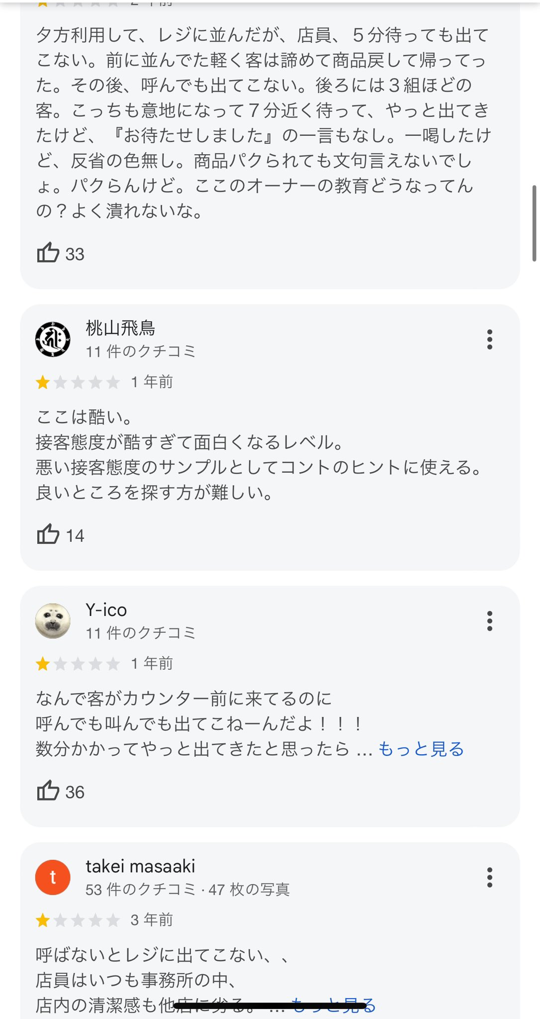 ▼調べると相当酷い店舗らしいけど