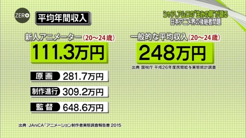▼あ、やっぱり待遇改善されつつあるのね。それは良かった。アニメ業界に限らず就職氷河期自体の低賃金長時間労働は絶対におかしかったからね