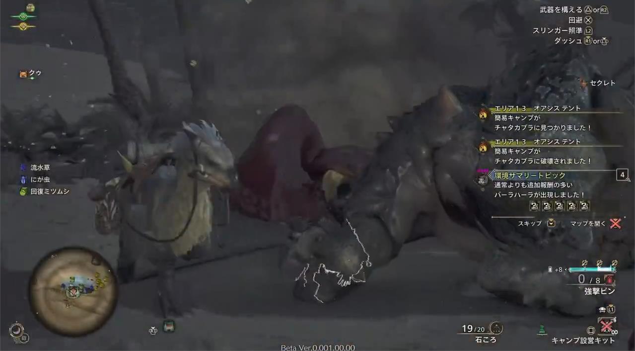 モンスターにキャンプ壊されるっていうのは知ってたけど、こうなるとは思ってなかった、びっくりした。テントの中でも安心できない。