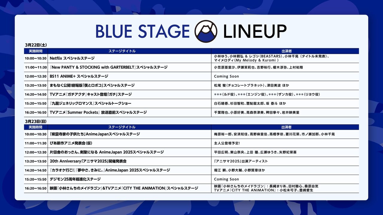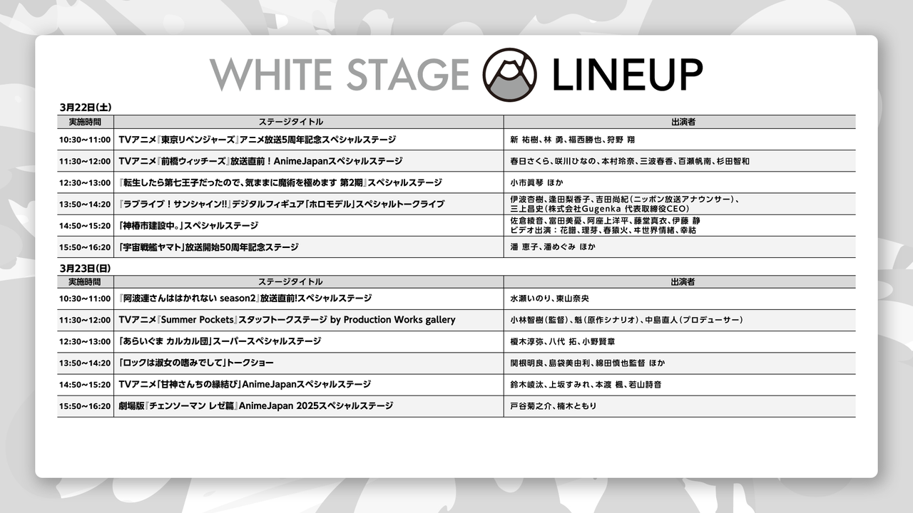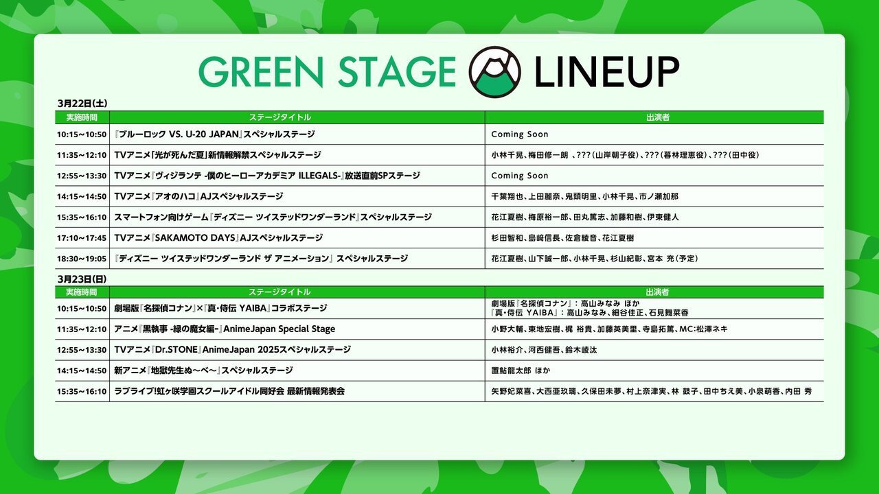 🔽ステージラインナップ一覧https://t.co/oifFeI4FTJ#AJ2025#AnimeJapan pic.twitter.com/IGmMeFQIjW