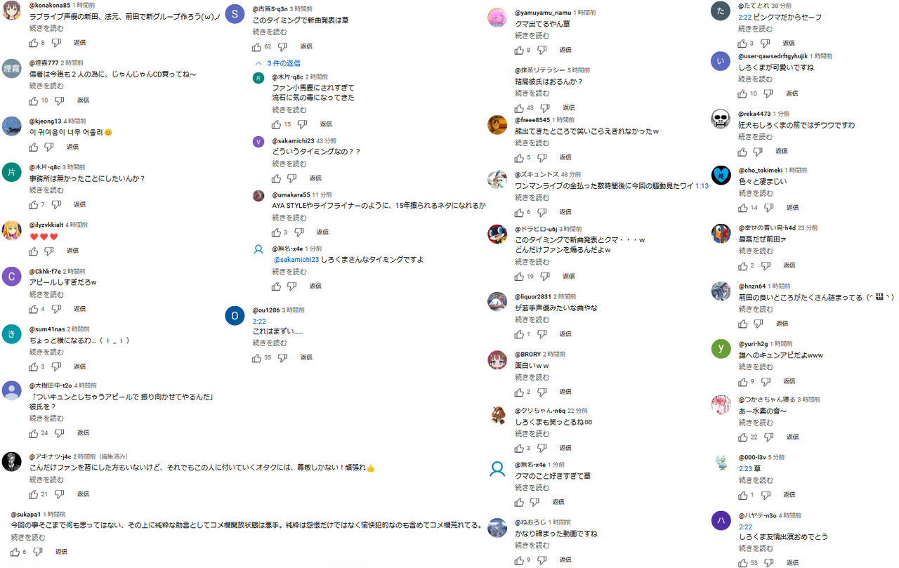 声優 タグ :#前田佳織里 コメントを見る 71 2025.1.22 02:00 【悲報】声優・前田佳織里さんの新曲MV、コメ欄が荒らされ閉鎖・・・ twitterでシェア facebookでシェア この記事への反応 ・しろくまいるじゃん ・熊といちゃいちゃしてるMVで草 ・このタイミングでクマとイチャイチャとかネタを提供しすぎだろ ・さっきまで見れたのに閉じたのかw そりゃMVにしろくま出したらコメ欄もしろくまだらけになるわw ・ファーストライブ前の新曲なのに ・黒岩メダカの原作者と原作ファンがかわいそう ・もうめちゃくちゃだな ・やっぱりガン無視したところでノーダメで済むわけないわな クマ・・・ 勝利の女神 NIKKE アニス スパークリングサマー 1/7スケール プラスチック製 塗装済み完成品グッドスマイルアーツ上海(2025-10-31T00:00:01Z)レビューはありませんAmazon.co.jpで詳細を見る 涼宮ハルヒの劇場 「涼宮ハルヒ」シリーズ (角川スニーカー文庫)谷川 流(著), いとう のいぢ(イラスト)(2024-11-29T00:00:00.000Z)5つ星のうち4.3Amazon.co.jpで詳細を見る ねんどろいど ウマ娘 プリティーダービー ミホノブルボン ノンスケール プラスチック製 塗装済み可動フィギュアグッドスマイルカンパニー(2025-05-31T00:00:01Z)レビューはありませんAmazon.co.jpで詳細を見る 「声優」カテゴリの最新記事 【悲報】男性「女性の意識がない!AEDを使わなきゃ」⇒ 結果・・・ 【ほっこり】自衛官の「二十歳の誓い」上司もお父さんも良過ぎるwwww コメント(71件) コメント 名前 匿名で投稿 1.とある名無しのオタコム投稿日:2025年01月22日 02:01▼返信 お 2.とある名無しのオタコム投稿日:2025年01月22日 02:02▼返信 クマったなぁー 3.とある名無しのオタコム投稿日:2025年01月22日 02:03▼返信 くまさんかわいい 4.とある名無しのオタコム投稿日:2025年01月22日 02:06▼返信 オタコムの推しだったのに… 5.とある名無しのオタコム投稿日:2025年01月22日 02:16▼返信 しろくまはメタファー 6. 投稿日:2025年01月22日 02:17▼返信 ガチ恋勢発狂w ダサっ 7.とある名無しのオタコム投稿日:2025年01月22日 02:27▼返信 この曲の内容でタイミングが最悪過ぎるな 8. 投稿日:2025年01月22日 02:30▼返信 MVですらも匂わせ仕込んでて草 9.とある名無しのオタコム投稿日:2025年01月22日 02:33▼返信 全く酷いものだ ちょっとクマが映ってるだけじゃないか 10.とある名無しのオタコム投稿日:2025年01月22日 02:39▼返信 夢を売るのにミスったらこうなるだけやな Vに客取られて昔みたいな勢いも無いし素直に声を重視する時代に戻るべきや 11.とある名無しのオタコム投稿日:2025年01月22日 02:41▼返信 締り系 12.とある名無しのオタコム投稿日:2025年01月22日 02:41▼返信 そんな民度だから日本だけコメント禁止になるんだ 13.とある名無しのオタコム投稿日:2025年01月22日 03:04▼返信 > コメントはオフになっています。 w 14.とある名無しのオタコム投稿日:2025年01月22日 03:06▼返信 クマが出てきたのは偶然だとは思うけどな MVは音楽会社が作るんだろうし 15.とある名無しのオタコム投稿日:2025年01月22日 03:15▼返信 ※14 普段から白熊推ししてるのくらい知ってるだろ 16.とある名無しのオタコム投稿日:2025年01月22日 03:16▼返信 別に相手がいたからって何も悪いことはないのに アホすぎるやろ 17.とある名無しのオタコム投稿日:2025年01月22日 03:25▼返信 ガチ恋勢が反転アンチになってるからなぁ この手のアンチは年単位で粘着してくるアンチになるぞ 18.とある名無しのオタコム投稿日:2025年01月22日 03:40▼返信 匂わせがなかったら炎上しなかったんだよ プライベートで男性と交際してようが、それを仕事で出さなければ問題なかった 19.とある名無しのオタコム投稿日:2025年01月22日 03:43▼返信 >>16 本人が本気でそう思ってるならそもそも彼氏いること隠す必要もないんだよ 最初っから恋愛とか普通にするけどそれはそれとして演技や歌唱力で評価してほしいってスタンスで活動すりゃええだけやろ? 隠さなきゃ売れないって自覚があったから隠してて、バレた結果予想通りのことが起きてるだけ 20.とある名無しのオタコム投稿日:2025年01月22日 03:45▼返信 オタクって本当に誹謗中傷が大好きなんだな 21.とある名無しのオタコム投稿日:2025年01月22日 03:48▼返信 彼氏いないアピールまでしてたしな そんなアピールしなければ良かったのに・・・(^^; 擁護はできんな まぁどうでもいいけど 22.とある名無しのオタコム投稿日:2025年01月22日 03:51▼返信 女性声優にネチネチ粘着して集団で誹謗中傷 これが弱男陰キャチー牛の所業 23.とある名無しのオタコム投稿日:2025年01月22日 04:00▼返信 弱男陰キャチー牛に怒ってる弱男陰キャチー牛がいて草 24.とある名無しのオタコム投稿日:2025年01月22日 04:04▼返信 (΄◉◞౪◟◉`) 25. 投稿日:2025年01月22日 04:22▼返信 折角中居のおかげで忘れてもらえそうだったのに 26.とある名無しのオタコム投稿日:2025年01月22日 04:37▼返信 ドル売りやめて実力声優に転向しよう 27.とある名無しのオタコム投稿日:2025年01月22日 04:42▼返信 ※10 匂わせは「ミス」った