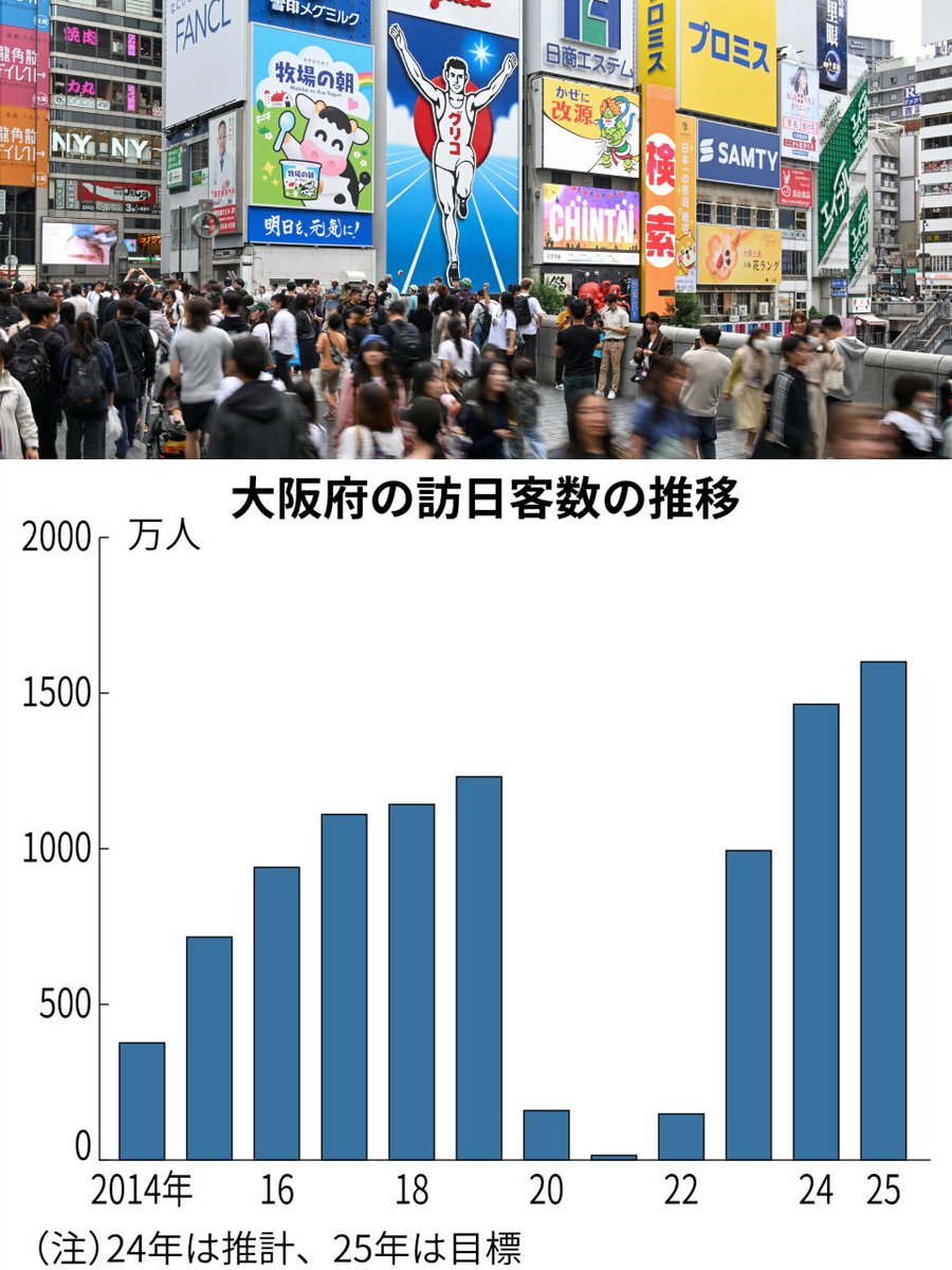 大阪府の訪日客、2024年は1464万人 過去最高を更新https://t.co/qWAYhSAmzM