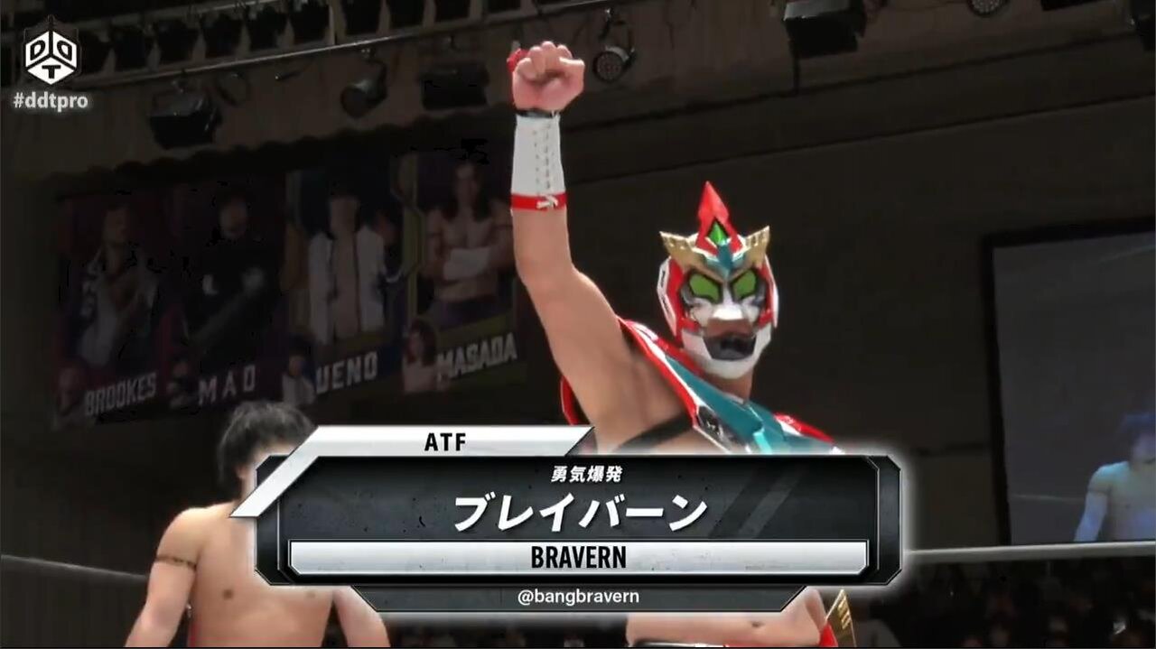 試合を見て興奮したのか稲田さんが、思わず強欲軍の捨て台詞を叫んでしまう! 一方、プロレスデビュー戦を終えたブレイバーンは、DDTがピンチになったときは再び参戦することを約束した!