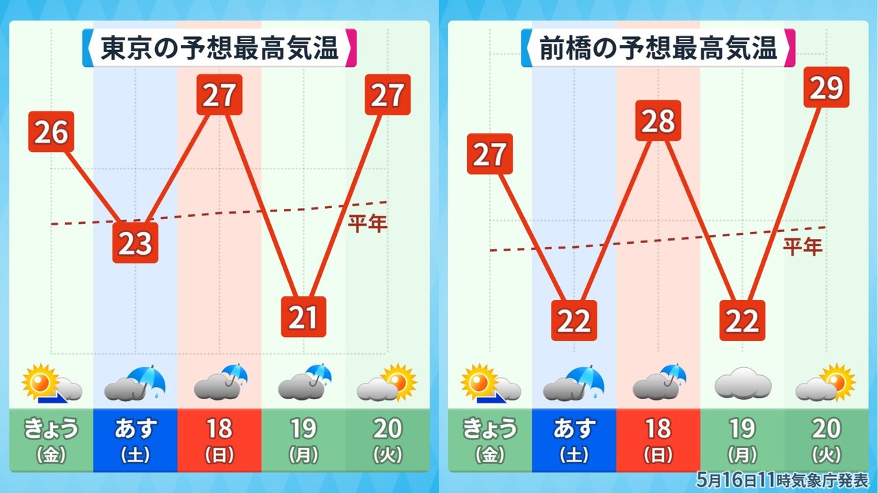 日曜日雨で27℃とかエグい