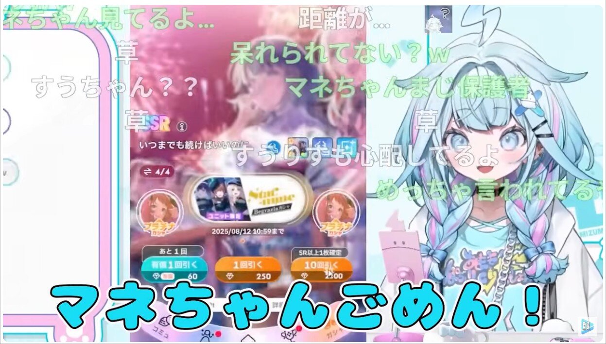 他のホロメンの課金は笑えるけど、すうちゃんの廃課金は心配が勝つんだがw
