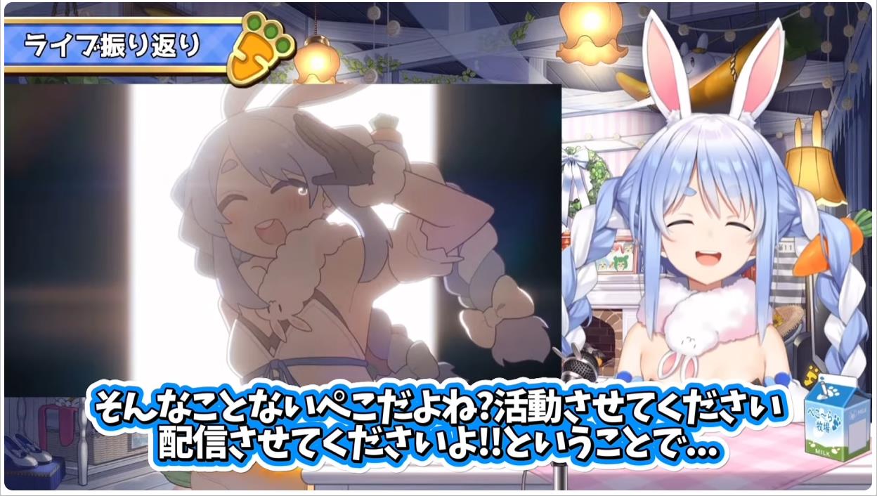 現在、その「冷えたチキン」が武道館にあることがわかっていて、 ぺこらちゃんとファン(うさ耳同盟)は武道館を目指しています。