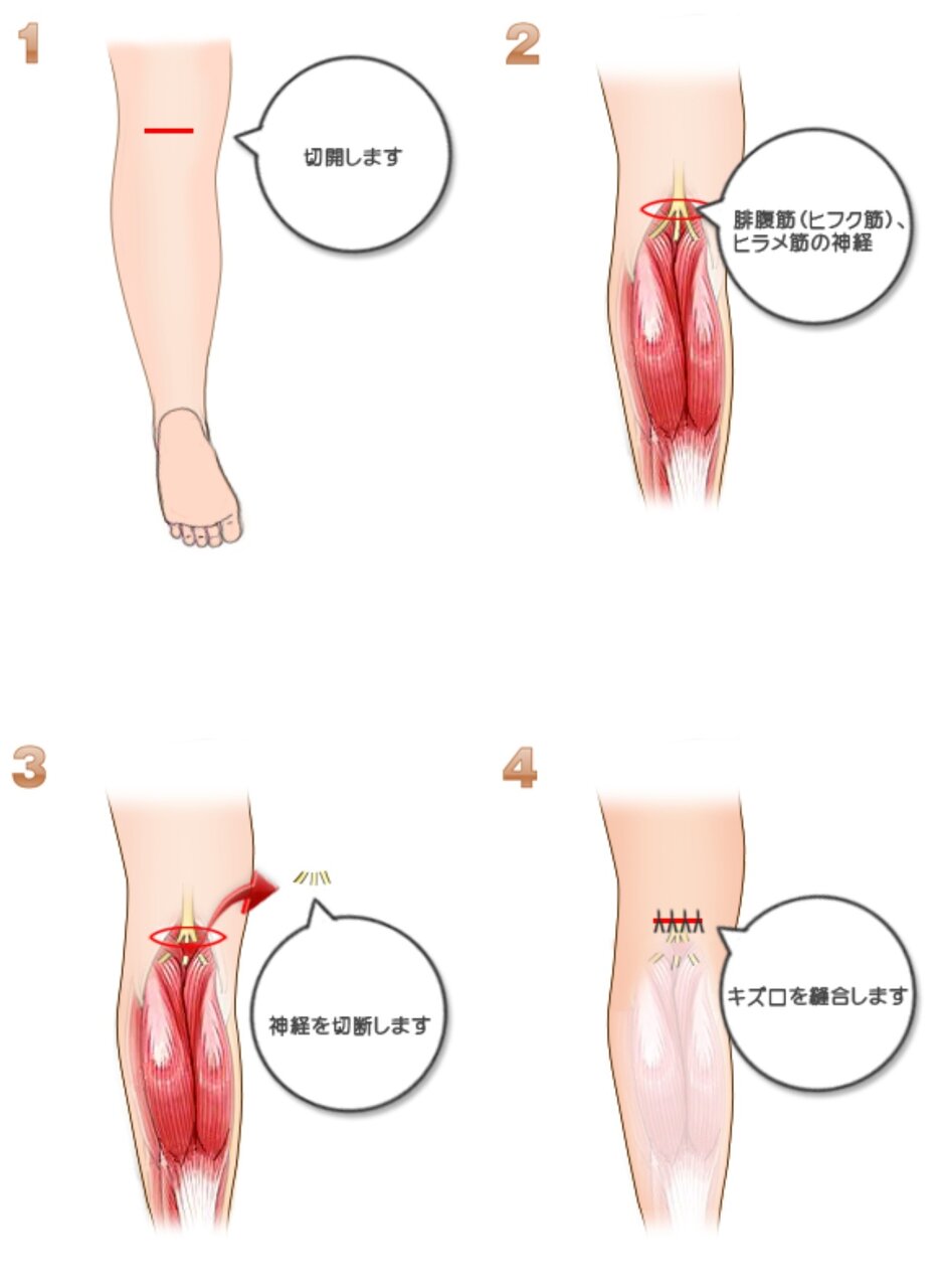 ふくらはぎの神経を切る→筋肉が萎縮する→足が細くなる