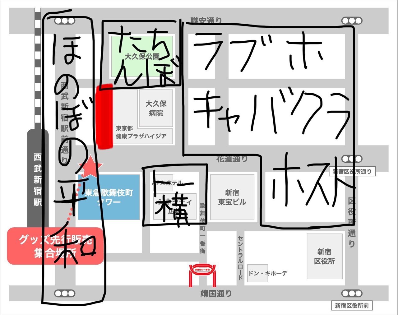 ニューハーフ客引きエリアを書くの忘れてました(赤エリア) pic.twitter.com/X1JTb1aLRM