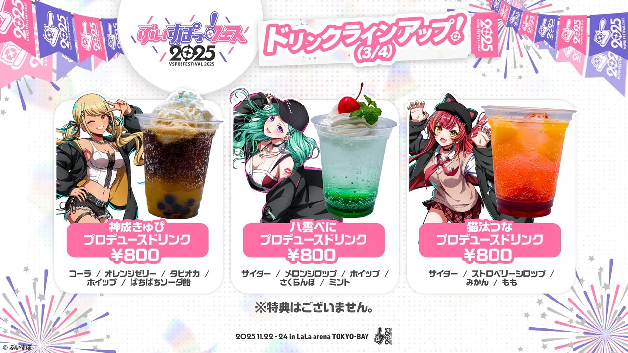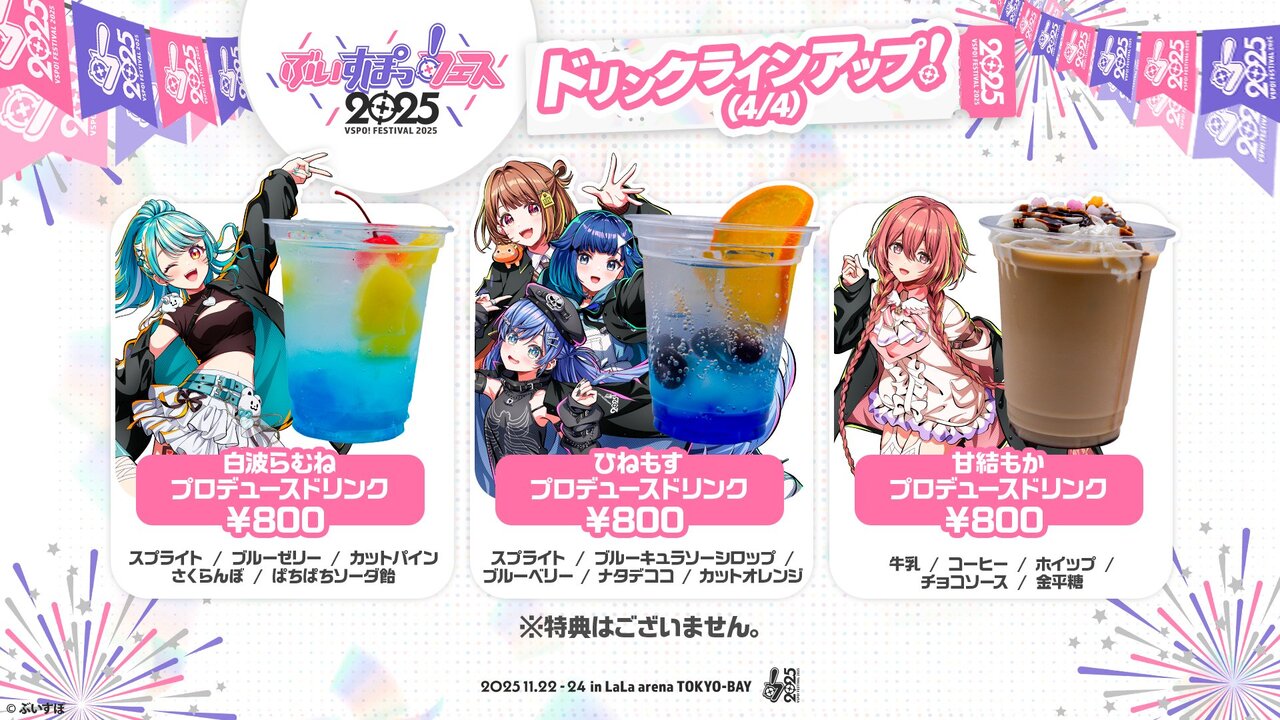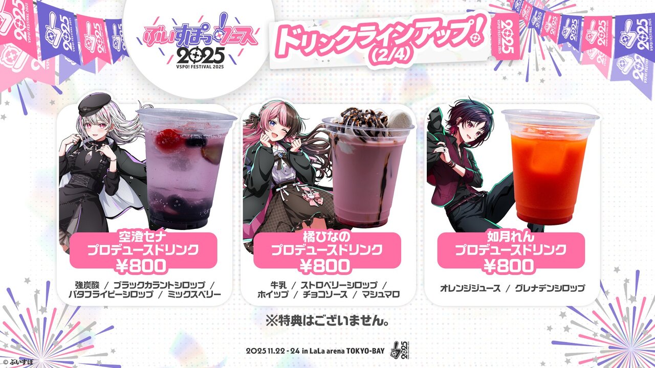 ぶいすぽっ!フェス2025会場内で販売されるドリンクメニューはこちら🌸