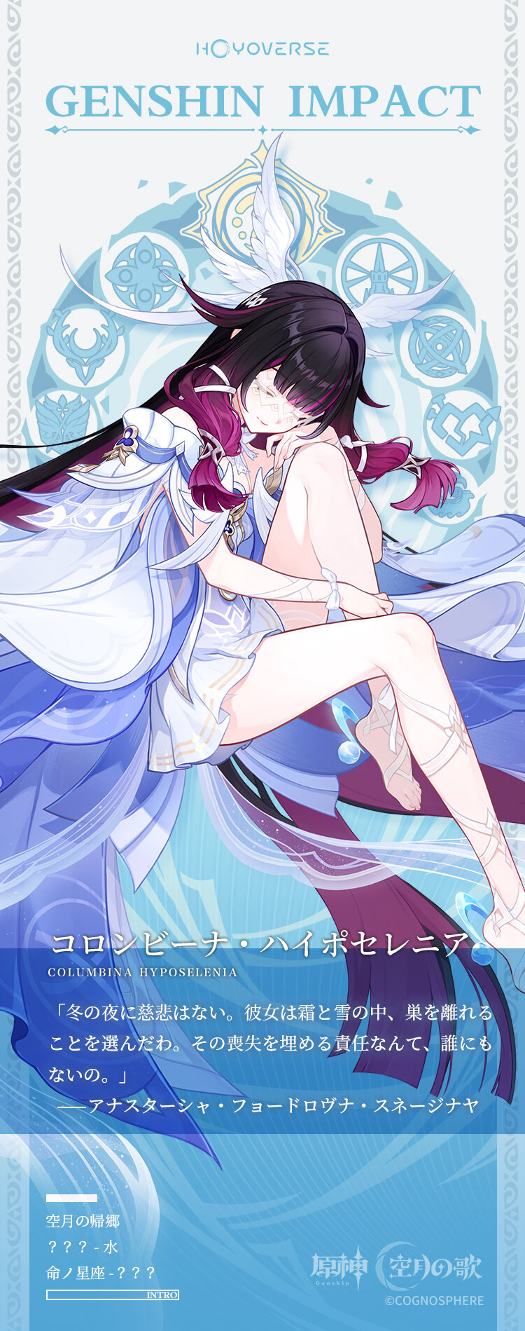 「原神」,水の力を使うキャラクター「コロンビーナ・ハイポセレニア」(CV:Lynn)の情報を公開。命ノ星座は不明